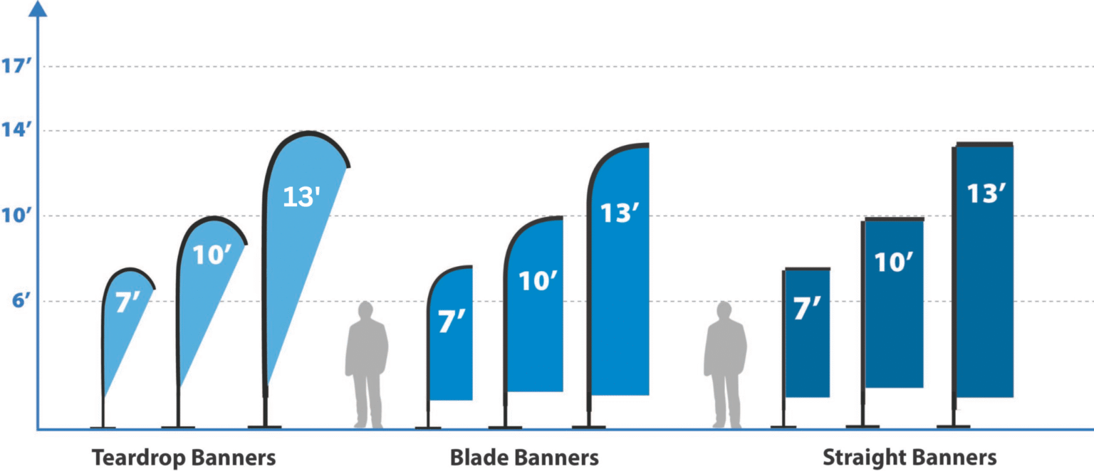 Our Blade Banners feature a dynamic, vertical shape that commands attention in busy environments while maintaining stability in outdoor conditions.