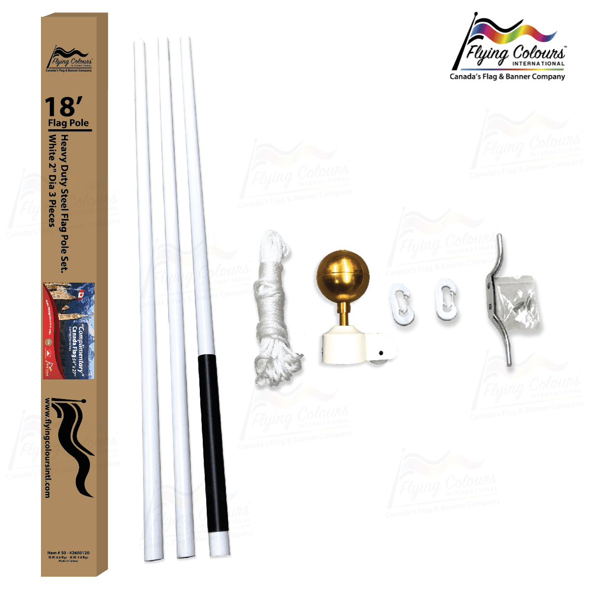 This 18-foot steel flagpole features a three-piece sectional design, offering strength and easy transport for both residential and commercial use. Built to withstand the elements year-round, it’s the perfect match for our Canada flag—show your pride with a display that’s made to last.